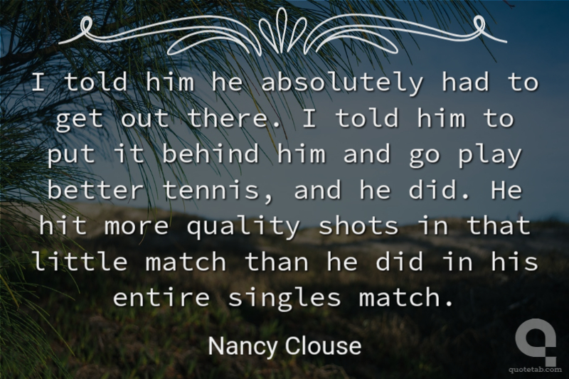I told him he absolutely had to get out there. I told him to put it behind him and go play better tennis, and he did. He hit more quality shots in that little match than he did in his entire singles match.