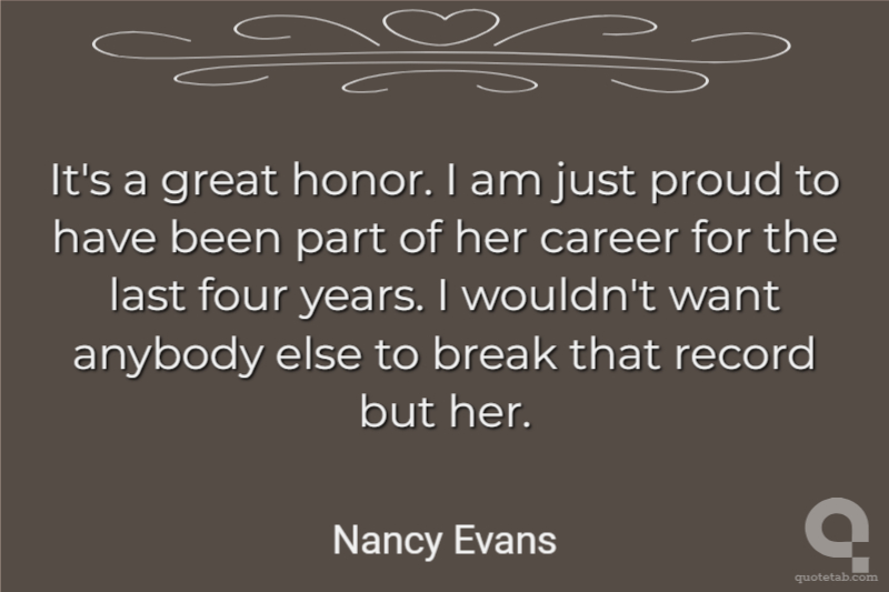 It's a great honor. I am just proud to have been part of her career for the last four years. I wouldn't want anybody else to break that record but her.