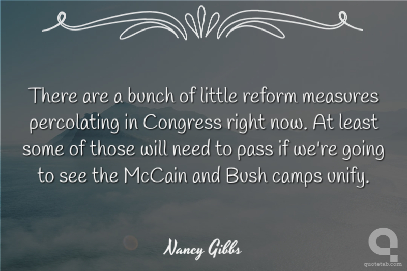 There are a bunch of little reform measures percolating in Congress right now. At least some of those will need to pass if we're going to see the McCain and Bush camps unify.
