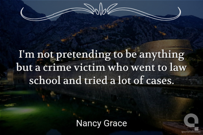 I'm not pretending to be anything but a crime victim who went to law school and tried a lot of cases.