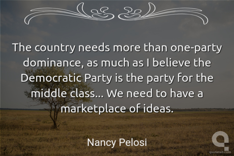 The country needs more than one-party dominance, as much as I believe the Democratic Party is the party for the middle class... We need to have a marketplace of ideas.