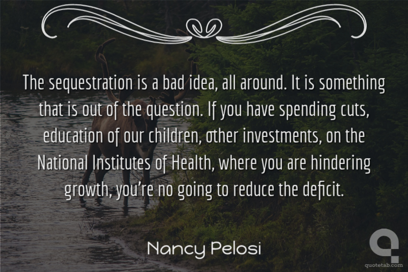 The sequestration is a bad idea, all around. It is something that is out of the question. If you have spending cuts, education of our children, other investments, on the National Institutes of Health, where you are hindering growth, you're no going to reduce the deficit.