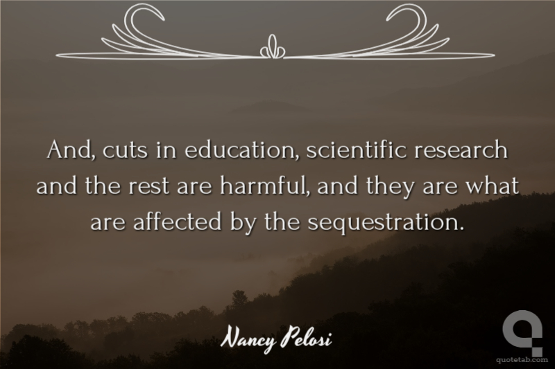 And, cuts in education, scientific research and the rest are harmful, and they are what are affected by the sequestration.