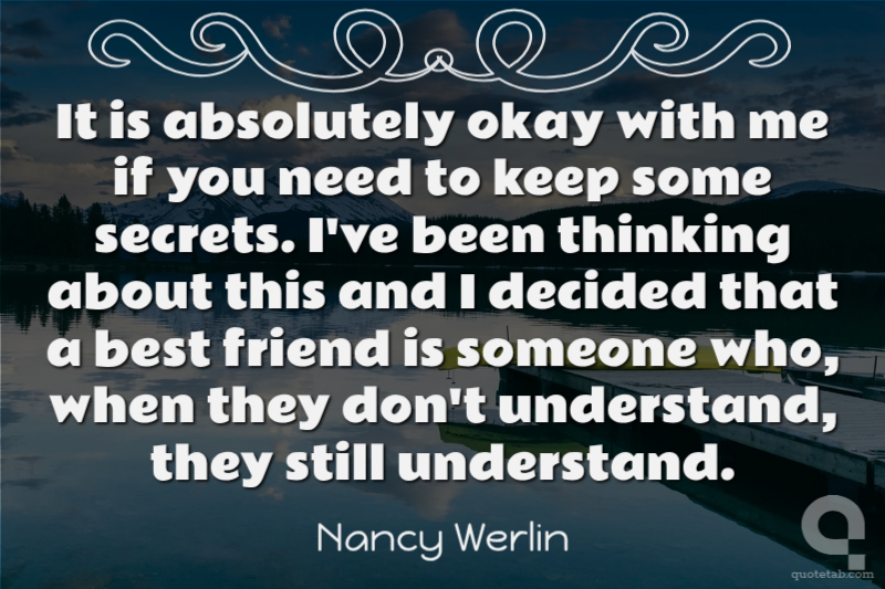 It is absolutely okay with me if you need to keep some secrets. I've been thinking about this and I decided that a best friend is someone who, when they don't understand, they still understand.