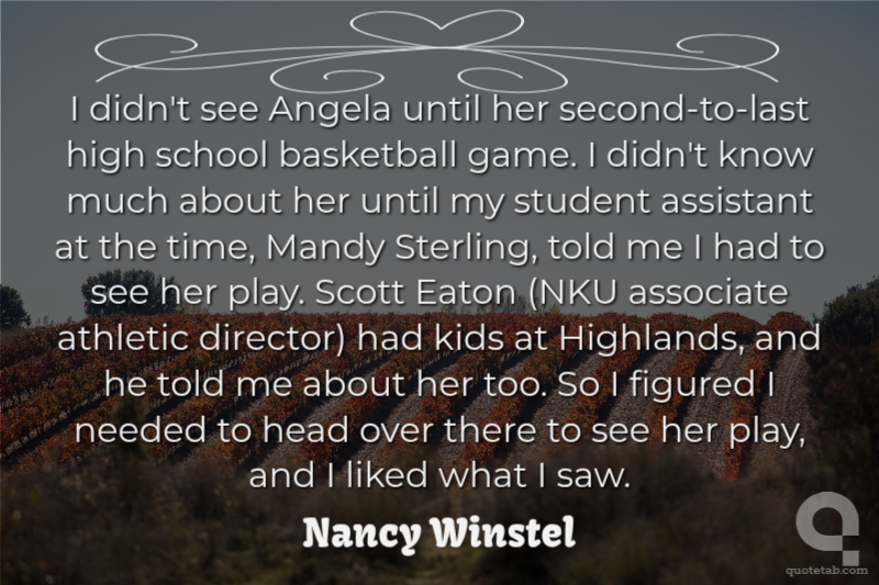 I didn't see Angela until her second-to-last high school basketball game. I didn't know much about her until my student assistant at the time, Mandy Sterling, told me I had to see her play. Scott Eaton (NKU associate athletic director) had kids at Highlands, and he told me about her too. So I figured I needed to head over there to see her play, and I liked what I saw.