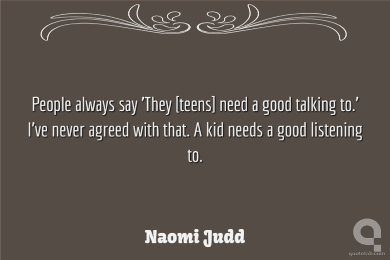 People always say 'They [teens] need a good talking to.' I've never agreed with that. A kid needs a good listening to.