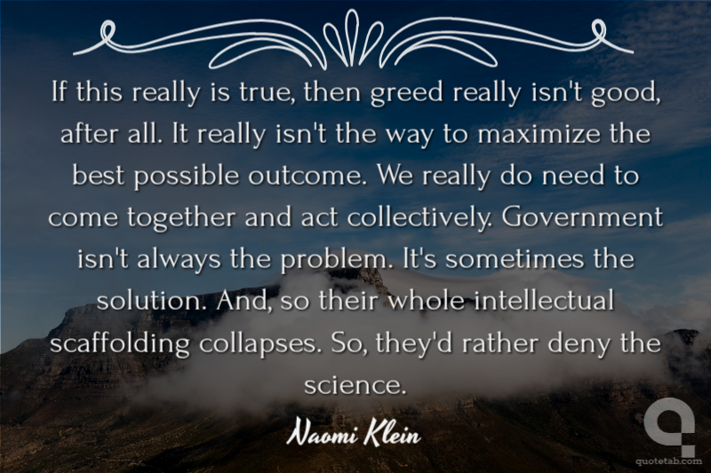 If this really is true, then greed really isn't good, after all. It really isn't the way to maximize the best possible outcome. We really do need to come together and act collectively. Government isn't always the problem. It's sometimes the solution. And, so their whole intellectual scaffolding collapses. So, they'd rather deny the science.