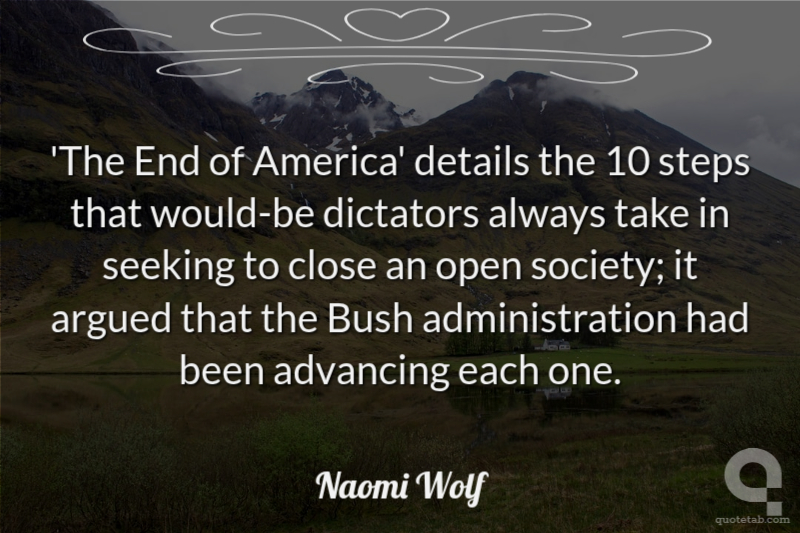 'The End of America' details the 10 steps that would-be dictators always take in seeking to close an open society; it argued that the Bush administration had been advancing each one.