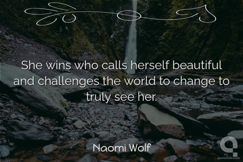 She wins who calls herself beautiful and challenges the world to change to truly see her.