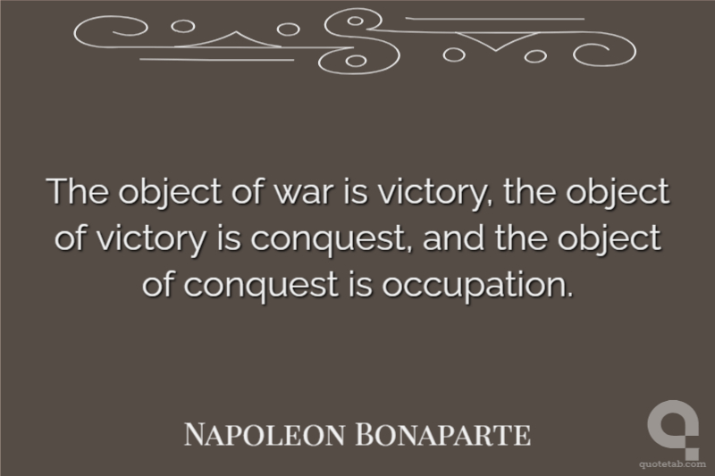 The object of war is victory, the object of victory is conquest, and the object of conquest is occupation.