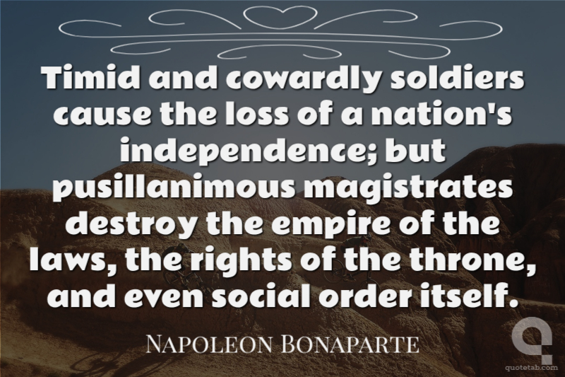 Timid and cowardly soldiers cause the loss of a nation's independence; but pusillanimous magistrates destroy the empire of the laws, the rights of the throne, and even social order itself.