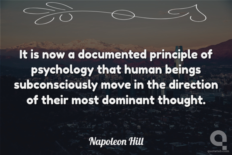 It is now a documented principle of psychology that human beings subconsciously move in the direction of their most dominant thought.