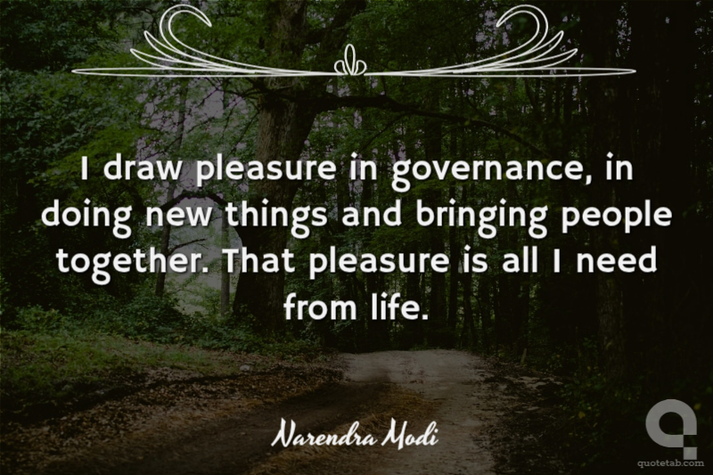 I draw pleasure in governance, in doing new things and bringing people together. That pleasure is all I need from life.