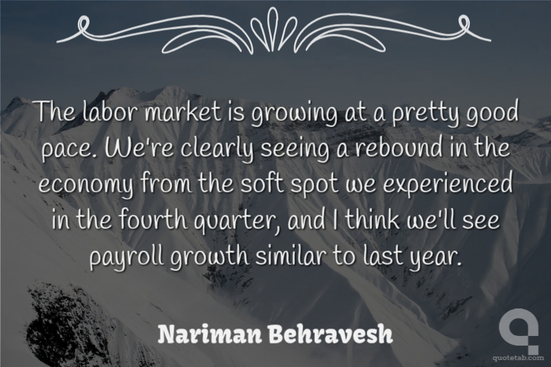 The labor market is growing at a pretty good pace. We're clearly seeing a rebound in the economy from the soft spot we experienced in the fourth quarter, and I think we'll see payroll growth similar to last year.