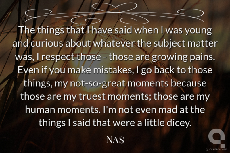 The things that I have said when I was young and curious about whatever the subject matter was, I respect those - those are growing pains. Even if you make mistakes, I go back to those things, my not-so-great moments because those are my truest moments; those are my human moments. I'm not even mad at the things I said that were a little dicey.