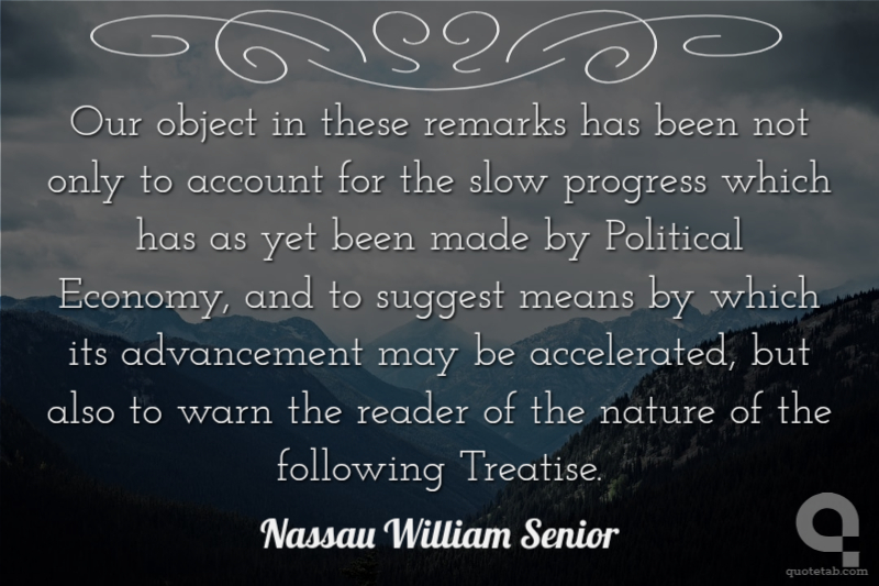 Our object in these remarks has been not only to account for the slow progress which has as yet been made by Political Economy, and to suggest means by which its advancement may be accelerated, but also to warn the reader of the nature of the following Treatise.