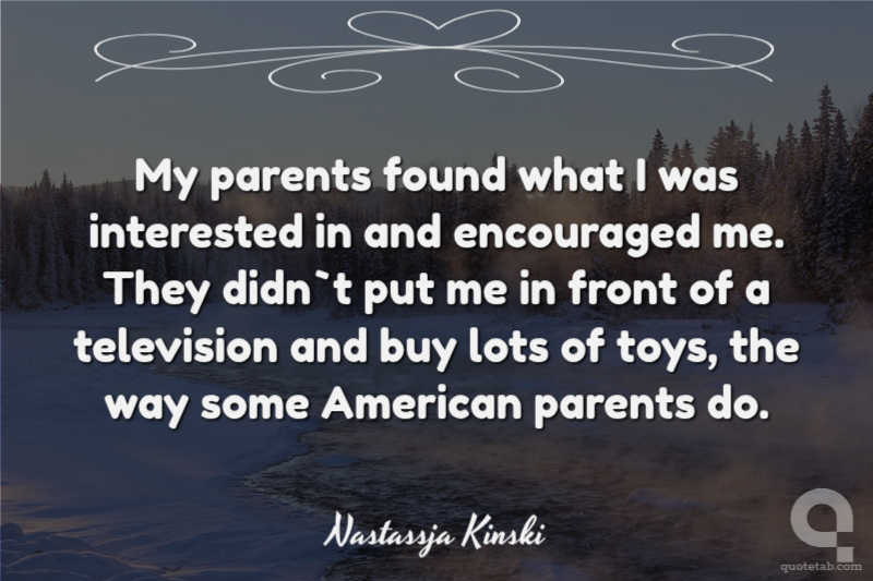 My parents found what I was interested in and encouraged me. They didn`t put me in front of a television and buy lots of toys, the way some American parents do.
