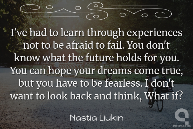I've had to learn through experiences not to be afraid to fail. You don't know what the future holds for you. You can hope your dreams come true, but you have to be fearless. I don't want to look back and think, What if?