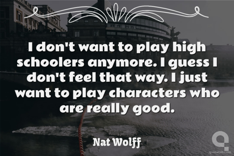 I don't want to play high schoolers anymore. I guess I don't feel that way. I just want to play characters who are really good.