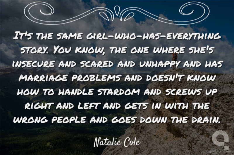 It's the same girl-who-has-everything story. You know, the one where she's insecure and scared and unhappy and has marriage problems and doesn't know how to handle stardom and screws up right and left and gets in with the wrong people and goes down the drain.