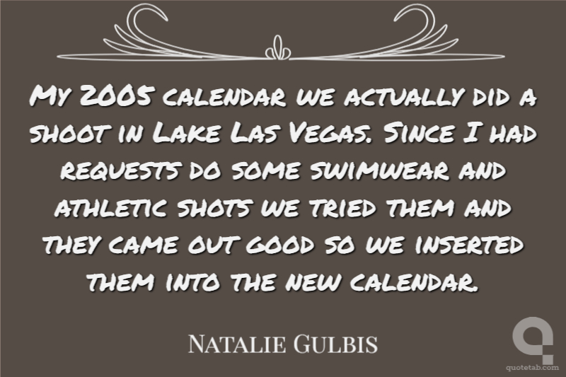 My 2005 calendar we actually did a shoot in Lake Las Vegas. Since I had requests do some swimwear and athletic shots we tried them and they came out good so we inserted them into the new calendar.