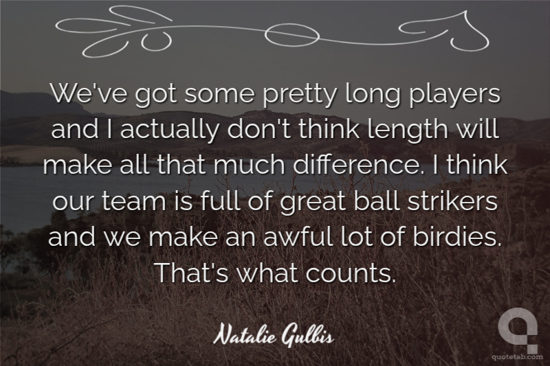 We've got some pretty long players and I actually don't think length will make all that much difference. I think our team is full of great ball strikers and we make an awful lot of birdies. That's what counts.