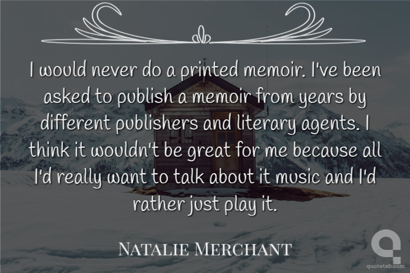 I would never do a printed memoir. I've been asked to publish a memoir from years by different publishers and literary agents. I think it wouldn't be great for me because all I'd really want to talk about it music and I'd rather just play it.