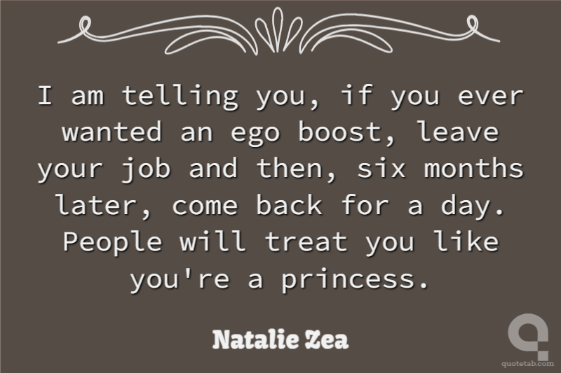 I am telling you, if you ever wanted an ego boost, leave your job and then, six months later, come back for a day. People will treat you like you're a princess.