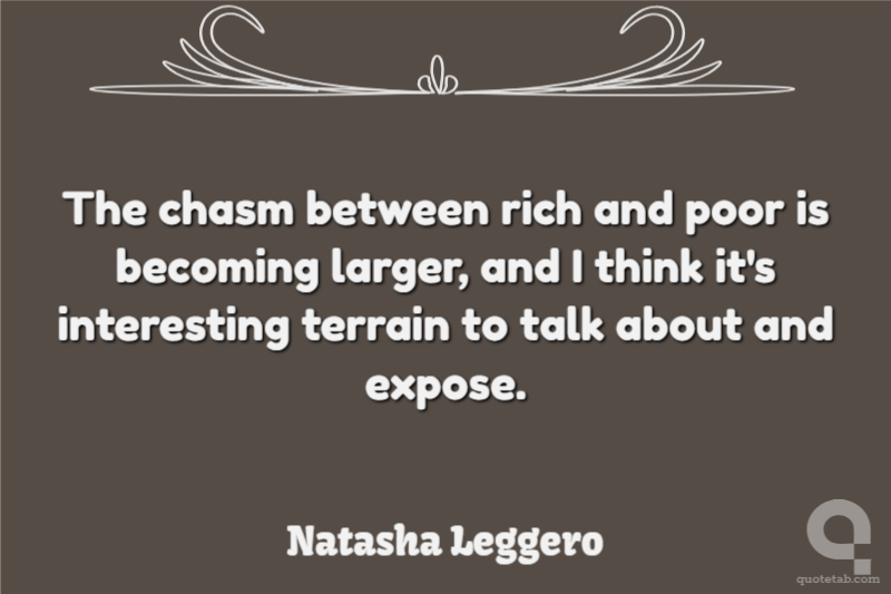 The chasm between rich and poor is becoming larger, and I think it's interesting terrain to talk about and expose.