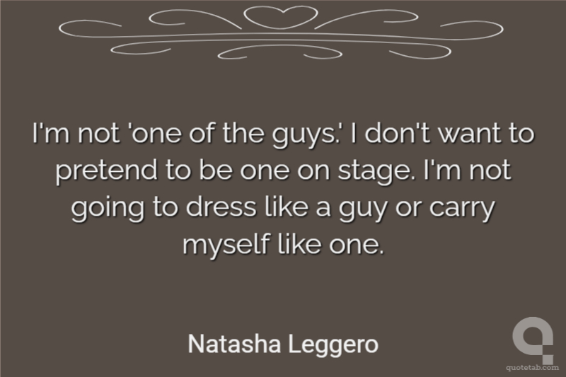 I'm not 'one of the guys.' I don't want to pretend to be one on stage. I'm not going to dress like a guy or carry myself like one.