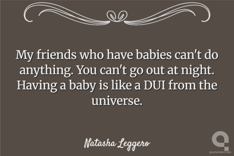 My friends who have babies can't do anything. You can't go out at night. Having a baby is like a DUI from the universe.
