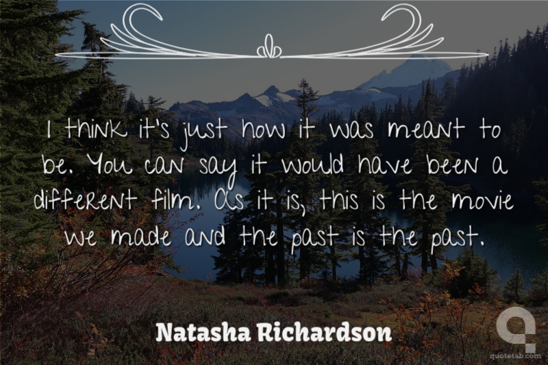 I think it's just how it was meant to be. You can say it would have been a different film. As it is, this is the movie we made and the past is the past.