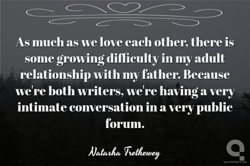 As much as we love each other, there is some growing difficulty in my adult relationship with my father. Because we're both writers, we're having a very intimate conversation in a very public forum.