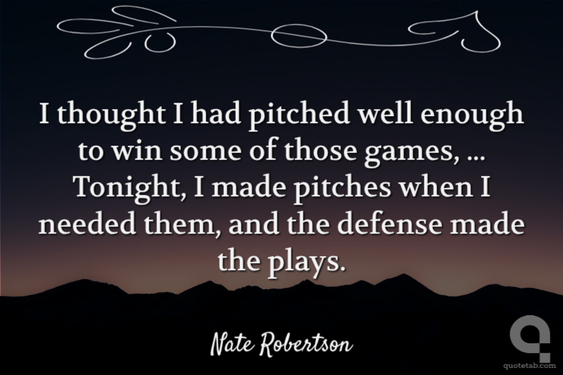 I thought I had pitched well enough to win some of those games, ... Tonight, I made pitches when I needed them, and the defense made the plays.