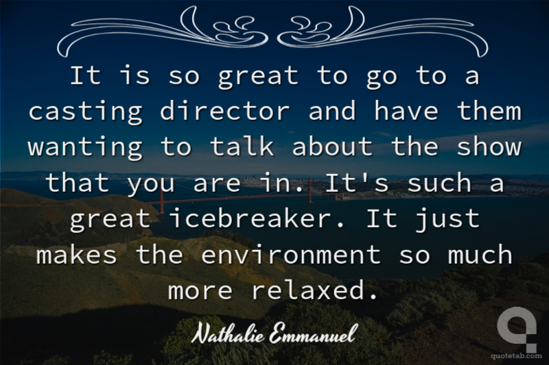 It is so great to go to a casting director and have them wanting to talk about the show that you are in. It's such a great icebreaker. It just makes the environment so much more relaxed.