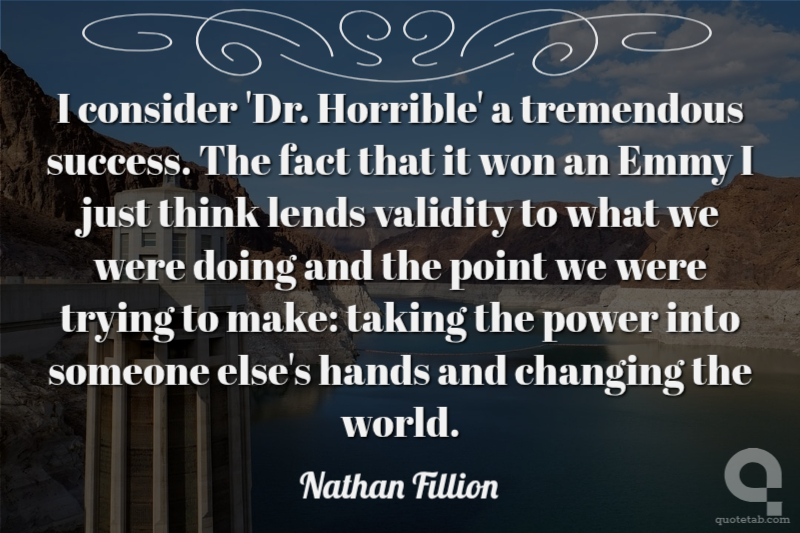 I consider 'Dr. Horrible' a tremendous success. The fact that it won an Emmy I just think lends validity to what we were doing and the point we were trying to make: taking the power into someone else's hands and changing the world.