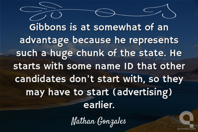 Gibbons is at somewhat of an advantage because he represents such a huge chunk of the state. He starts with some name ID that other candidates don't start with, so they may have to start (advertising) earlier.