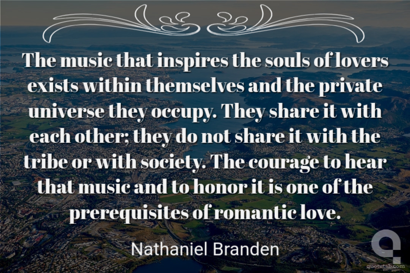 The music that inspires the souls of lovers exists within themselves and the private universe they occupy. They share it with each other; they do not share it with the tribe or with society. The courage to hear that music and to honor it is one of the prerequisites of romantic love.
