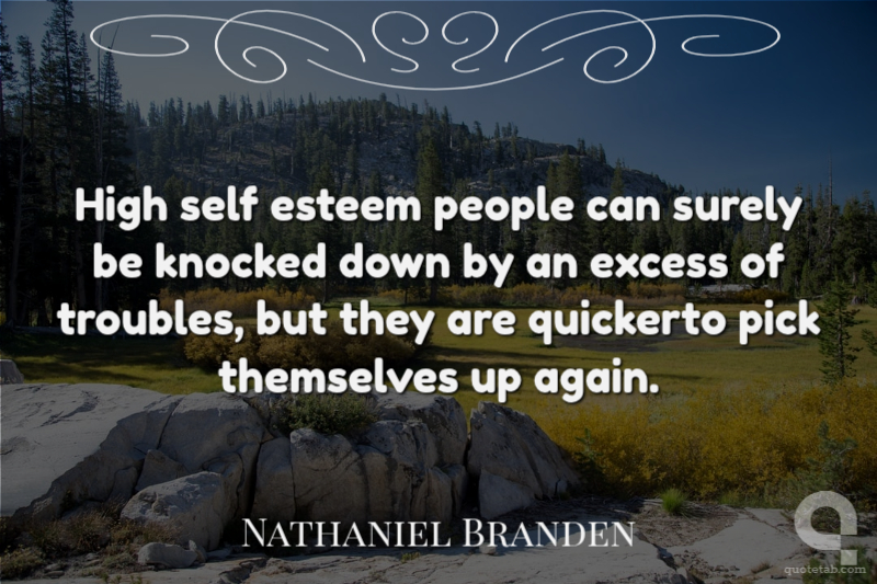 High self esteem people can surely be knocked down by an excess of troubles, but they are quickerto pick themselves up again.