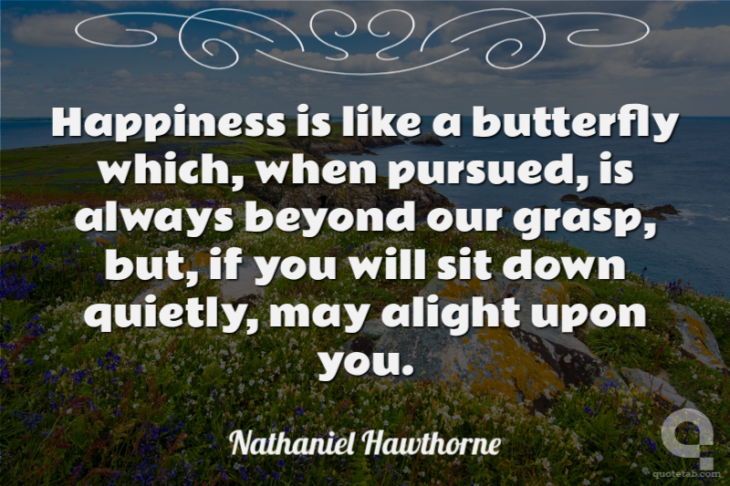 Happiness is like a butterfly which, when pursued, is always beyond our grasp, but, if you will sit down quietly, may alight upon you.