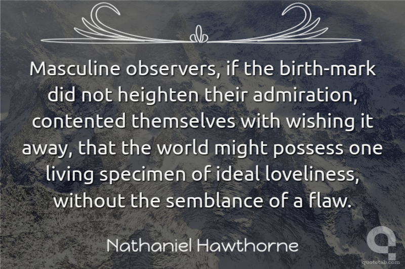Masculine observers, if the birth-mark did not heighten their admiration, contented themselves with wishing it away, that the world might possess one living specimen of ideal loveliness, without the semblance of a flaw.