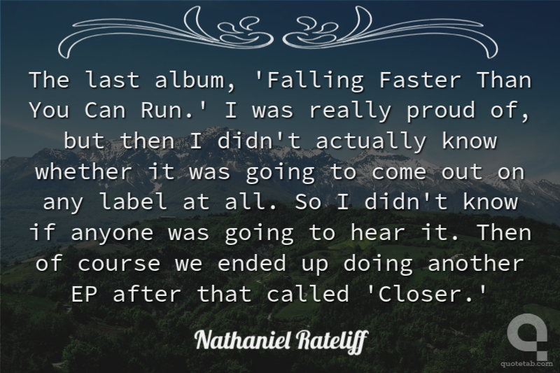 The last album, 'Falling Faster Than You Can Run.' I was really proud of, but then I didn't actually know whether it was going to come out on any label at all. So I didn't know if anyone was going to hear it. Then of course we ended up doing another EP after that called 'Closer.'