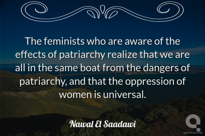 The feminists who are aware of the effects of patriarchy realize that we are all in the same boat from the dangers of patriarchy, and that the oppression of women is universal.