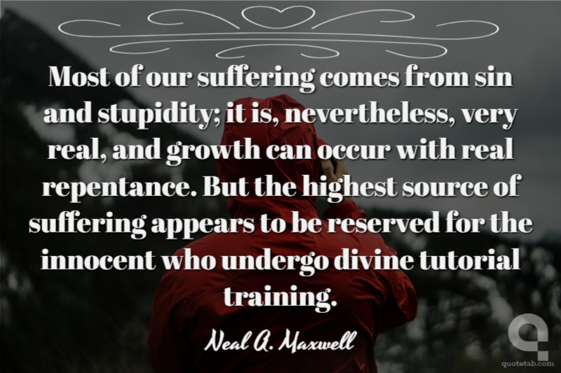 Most of our suffering comes from sin and stupidity; it is, nevertheless, very real, and growth can occur with real repentance. But the highest source of suffering appears to be reserved for the innocent who undergo divine tutorial training.