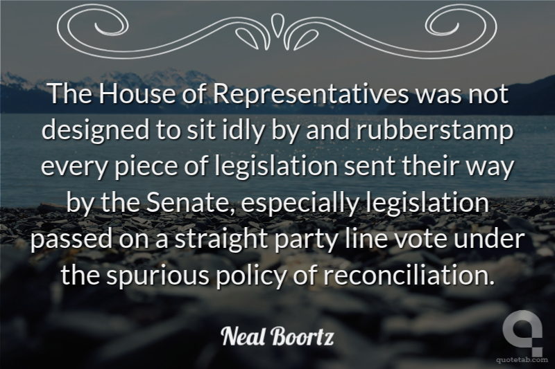 The House of Representatives was not designed to sit idly by and rubberstamp every piece of legislation sent their way by the Senate, especially legislation passed on a straight party line vote under the spurious policy of reconciliation.