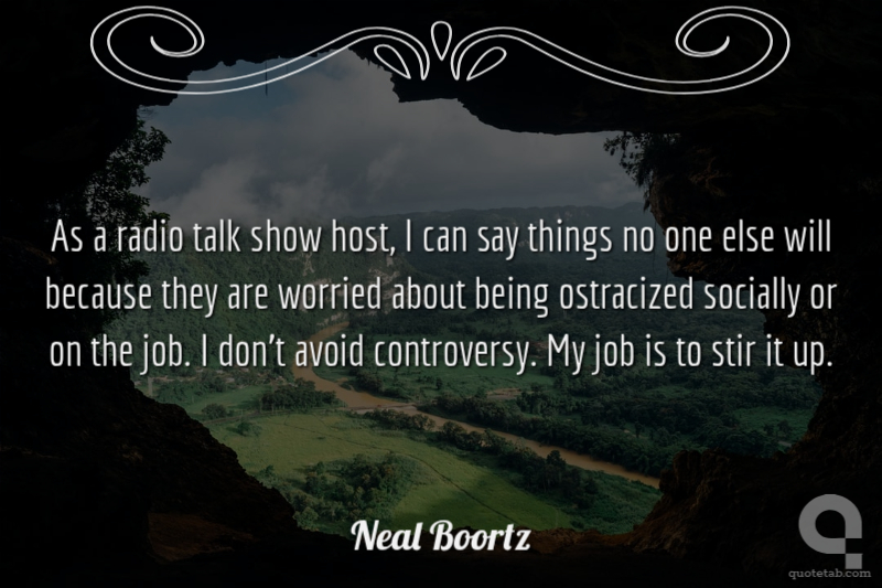 As a radio talk show host, I can say things no one else will because they are worried about being ostracized socially or on the job. I don't avoid controversy. My job is to stir it up.