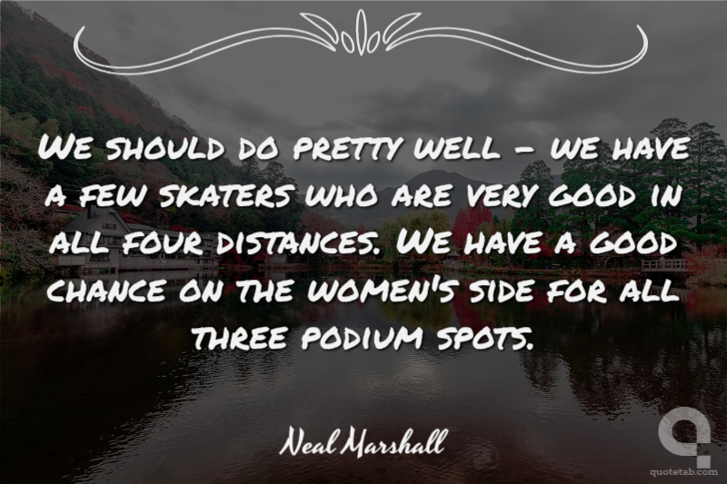 We should do pretty well - we have a few skaters who are very good in all four distances. We have a good chance on the women's side for all three podium spots.