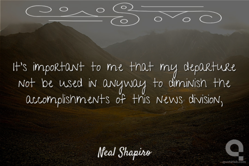 important to me that my departure not be used in any way to diminish the accomplishments of this news division.