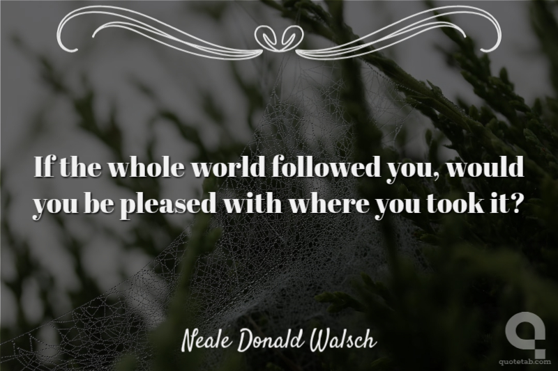 If the whole world followed you, would you be pleased with where you took it?