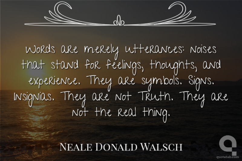 Words are merely utterances: noises that stand for feelings, thoughts, and experience. They are symbols. Signs. Insignias. They are not Truth. They are not the real thing.